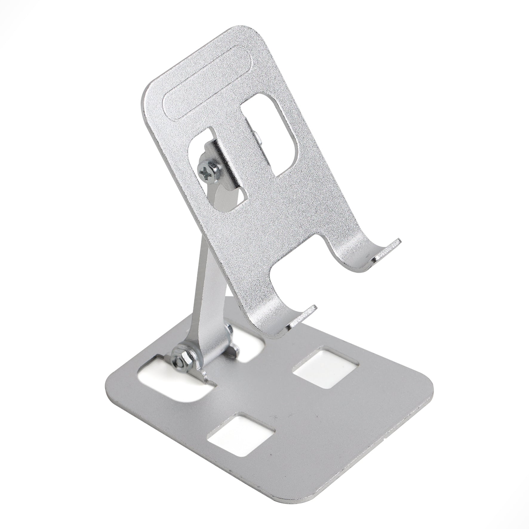 ARIZONE Phone Stand, Height Adjustable Phone Holder, Aluminum Foldable iPhone Stand for Desk, Stable Mobile Stand Holder Compatible with Most Phones (Silver)